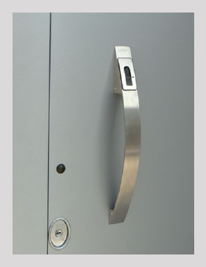 Abertura com cartão magnético, painel com teclado, telefone, etc.